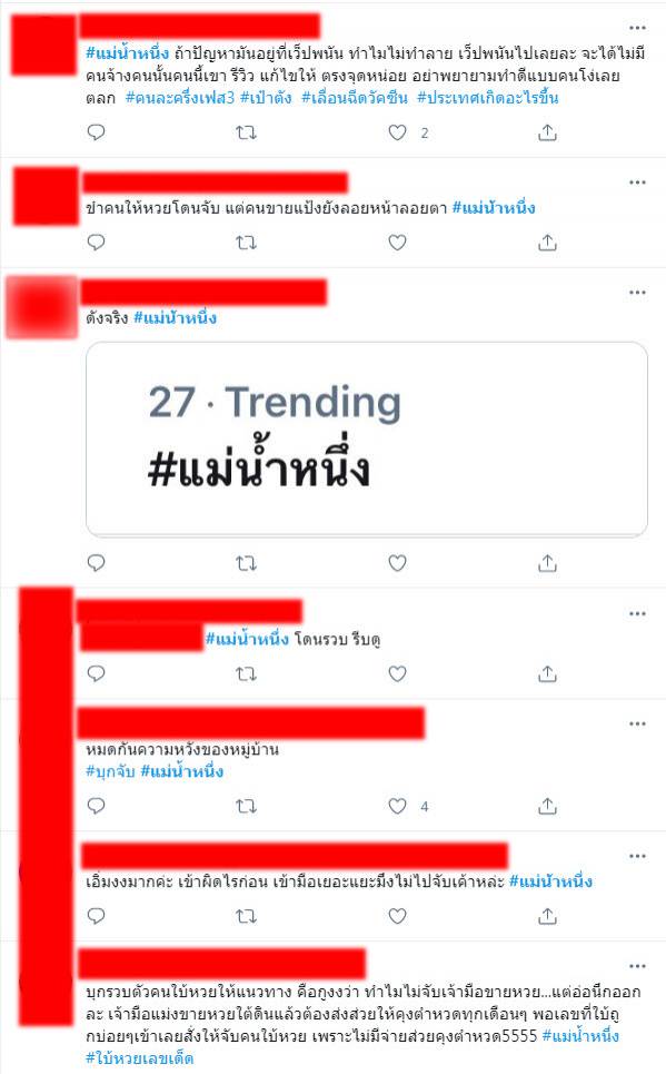 แม่น้ำหนึ่งโดนจับ คอหวยโล่ง แม่น้ำหนึ่ง ไลฟ์สด วอนอย่าด่าตำรวจบุกจับ ไขข้อสงสัยจะใบ้หวยต่อไหม แม่น้ำหนึ่ง นักใบ้หวยคนดัง ถูกตำรวจบุกจับคาบ้านพัก โคราช เข้าข่ายชักชวนเล่นการพนัน พล.ต.อ.ดำรง. แม่น้ำหนึ่ง ให้แล้ว 3 ตัวตรง รีบจองลอตตารี่ด่วน ลุ้น 16 มิถุนายน 64; แม่น้ำหนึ่ง ไลฟ์หลังโดน ตร.บุกจับผิดชวนเล่นพนัน ตอบชัดใบ้หวยต่อหรือไม่ vdo: แม่น้ำหนึ่ง ถูกจับ หลังพบ ไลฟ์ ใบ้หวย ชวนคนเล่น หวยใต้ดิน ตำรวจมีหลักฐาน บุกรวบตัวมาสอบสวน ปม ชักชวนคนเล่น พนันออนไลน์.